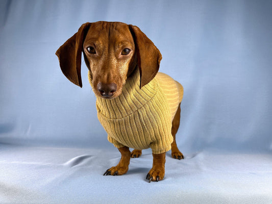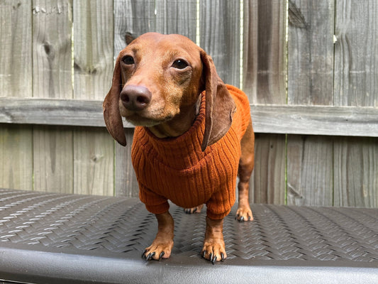 This Turtleneck Minature Dachshund Sweater Sully is wearing is a must-have to keep my furry 🧡 family warm and stylish for "all" seasons. Made from high-quality materials, this sweater is both durable and comfortable, making it perfect for daily wear. 🐾